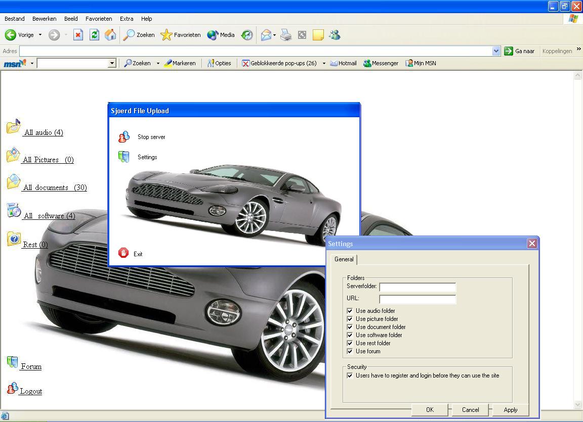 You can set if you want the forum to be active, if you want users to login, which links must appear, what the serverfolder is and the url of your website
