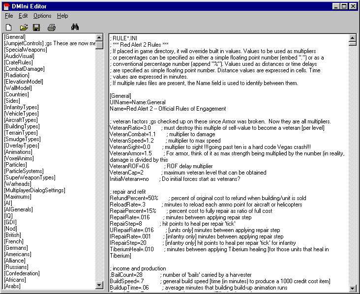 This is a Ini editor I made, it has many functions and is especially handy for editing the rules.ini file from Red Alert2.