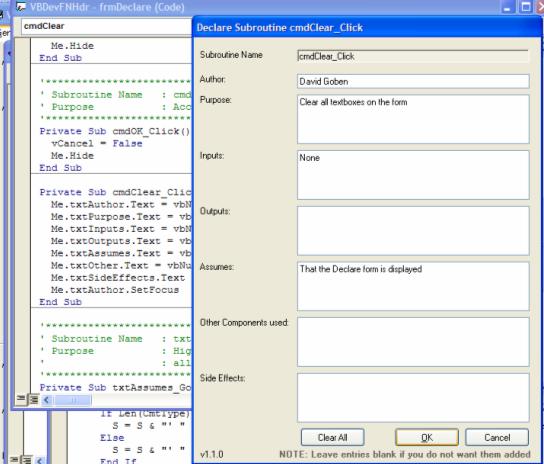 Updated. Version 1.1.1 (fixed ignore of Friend Properties). This VB Add-In allows E-Z formatting of Procedure headings. I wrote this because of the laziness of fellow developers who saw no sense in taking the time to AT LEAST document a Subroutine or Function or Property (until 6 months down the road when they wish they had).