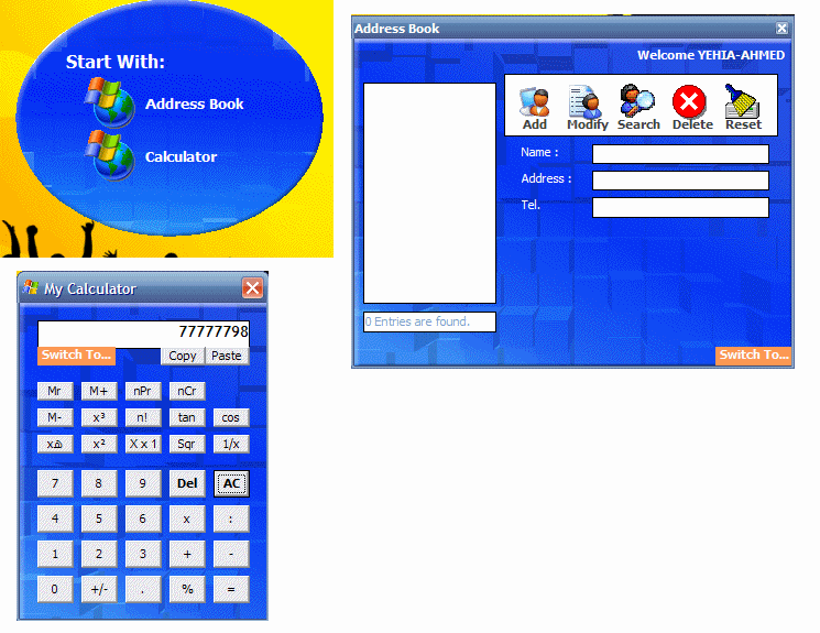 well,this is a basic addressbook and a calculator i wrote 6 years ago with a pretty GUI