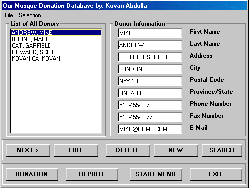 address book/donation records/ and REPORT of donation a user has made over a certain time
