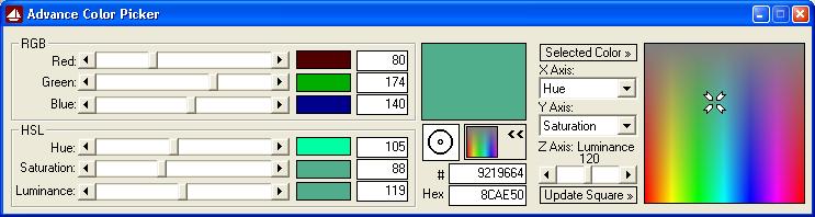 A code to slice and dice the "Color Cube" in various ways. Select any color on the screen and get the RGB, HSL, color value and HEX value.
