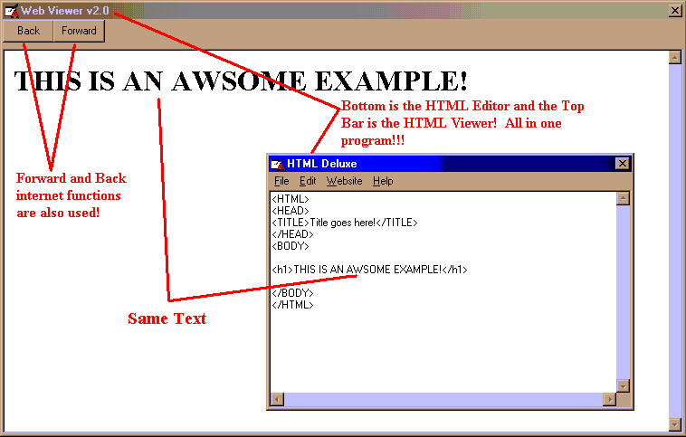 This program will show you how to make a text editor AND show you how to view a Webpage made in HTML in the same program.