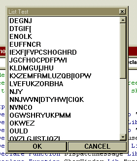 This is an all API list-box function. Use it the same way you would use inputbox() or msgbox(). Fully configurable and auto-resizes the controls on the fly. Very easy to use, and a great example to learn API/hooking in Visual Basic.