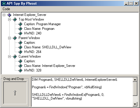 This program can be used to obtain handle of any visible window as well as generate the code to find that window using findwindow and findwindowex api functions. It also shows how to use drawfocusrect function to draw a rectangle around any window indicating that it has focus. All the code is commented and should be easy to understand.