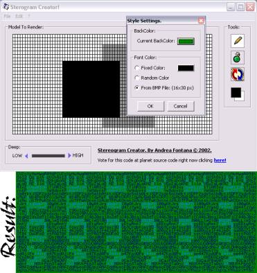 I've added the style window to customize your stereograms. You can color it also using a tile picture. (I also make the window resizable!)