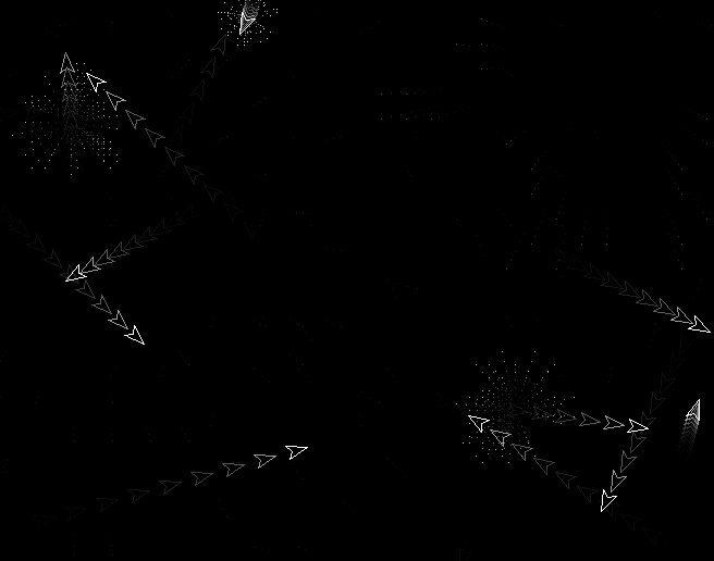 Watch the asteroid ships obliterate themselves as they charge on their course, only to be deflected by the edge of the screen. Hope you enjoy. Mike.