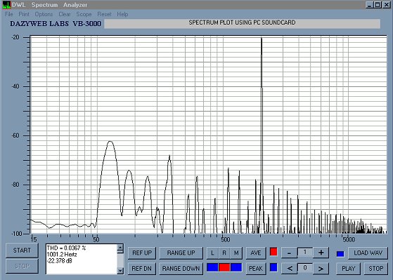 16K sample FFT based spectrum analyzer based on Deeth's original code, with print plot, file saving and loading, multiple sample rates, oscilloscope, average and peak hold, left/right/mono channel selection.