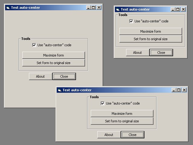 Basicly, when we resize a form, all the controls won't move and will stay on the upper left corner of the form. With my code, when you resize the form, all the controls will be centered on the form. The code use a dynamic structure to save all objects positions. You can save positions of the controls on each form you want.