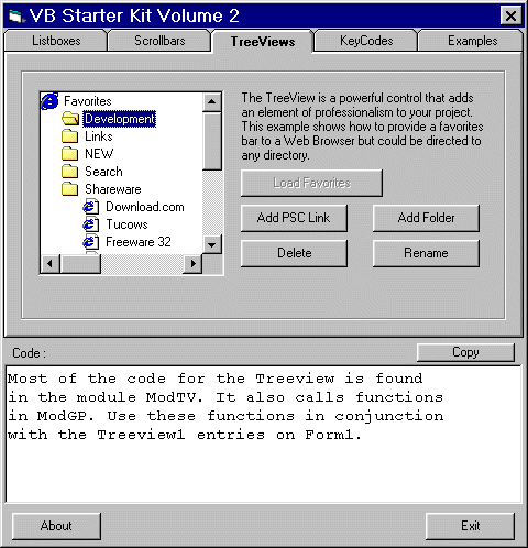 In response to requests for more samples here is Volume 2. This collection includes the use of scrollbars, listboxes and the treeview.