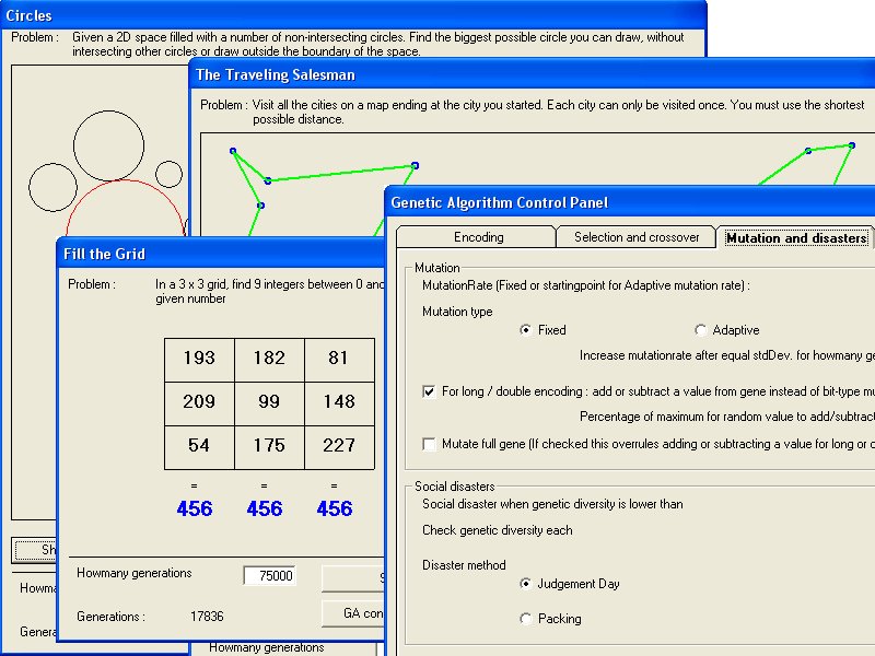 If you are new to Genetic Algorithms you will find extensive documentation (both in code and in separate textfiles) to help you understand what it is and how it works. Just run the examples and make out for youself if you want to learn more. You can use this class in your own projects to help you solve many kinds of problems.