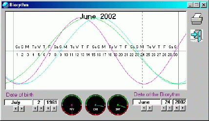 The three biorhythms begin in the positive phase at the moment of birth and continue regularily thoughout life. Each rhythm consists of low, critical and high days. Critical days are often times when a person's behavior and actions differ from the norm for the individual.