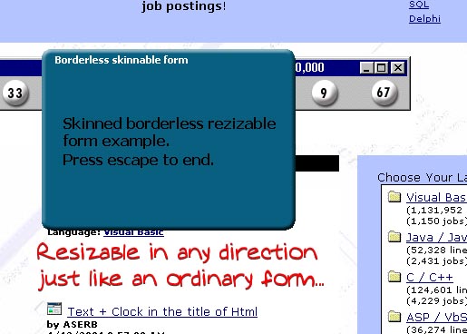 No comments have been posted about Borderless resizable, skinnable form. Why not be the first to post a comment about Borderless resizable, skinnable form.
