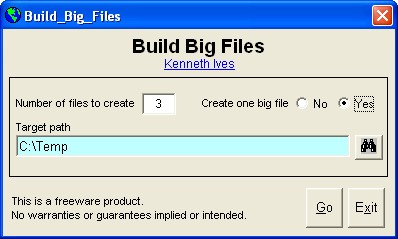 Ever have the need for a big test file? Now you can build one or more 1gb in size with the option to combine them into one very large file.