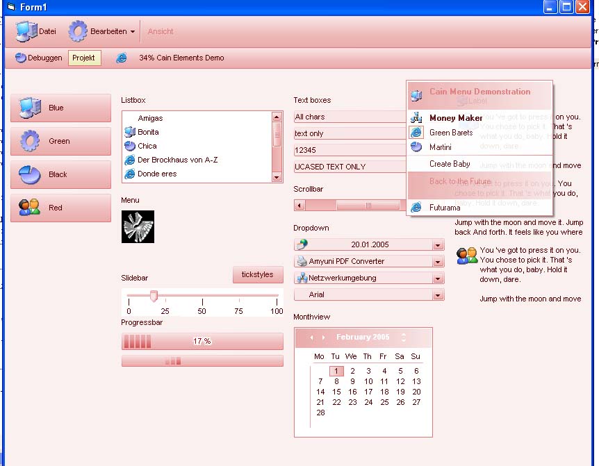 I improved the Controls a little bit and added a Harmonizer. The Harmonizer "harmonizes" the color and fonts of all controls that belongs to cainObjects. So you don't have to do it manually.