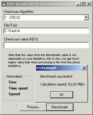 Yesterday, I was lookin' for some code to compute a CRC32 checksum value but could not find any fast working code here. So I made this class file that allows you to calculate real CRC32 checksums. I also needed *FAST* code so this uses assembler code that you can use without actually knowing any assembler. This code is able to compute 56 MB/s on a P3 600Mhz!!