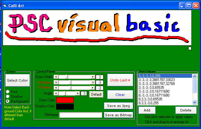 Just something I have been playing with. Needs lots of improvements, but I've done all I know how to do,especially with the outline or stroke of the brush(line method).I tried polygons,but proved beyond my knowhow.
