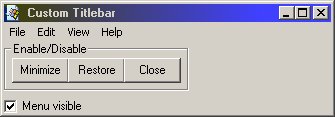 My Code replace the Titlebar within your App.The special about it is that you can choose the colors of the Titlebar.And you can use Menus in your Form.When you like it please vote for me ;-))