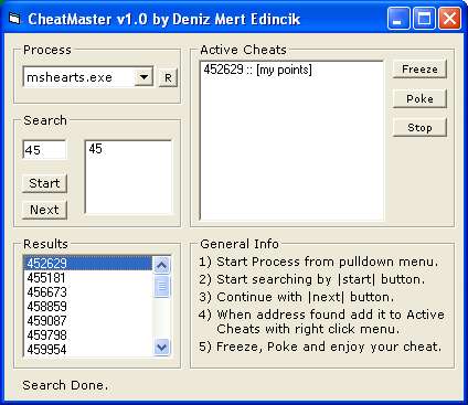 A pure VB program to cheat in games, like "WinHack" and "Game Wizard". It is well commented and uses WriteProcessMemory and ReadProcessMemory functions.
