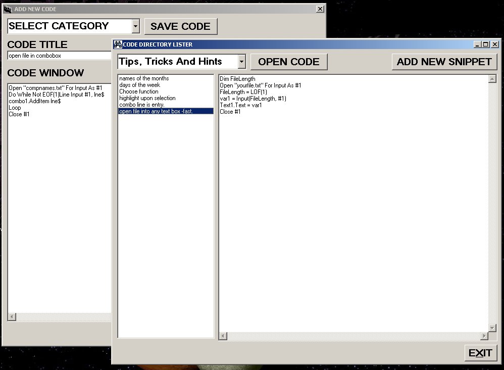 If like me you write bits of code then save it for a rainy day when it will be useful and then forget where you have saved it, this is the program for you.