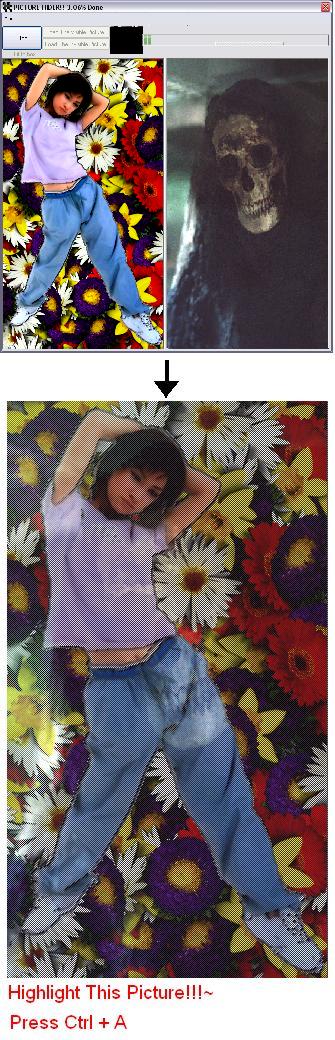 It creates a picture which contains a visible picture and a invisible picture. when it is highlighted in a web browser it will reveal the hidden picture. This is the upgraded version of the my old submition. It uses setpixel and get pixel api so, it is a lot faster than the old one. Please leave me a comment..i also need some one to help me with a problem regarding the setpixel api; the api uses pixel while the vb uses point.. so how do i make the progressbar accurate.