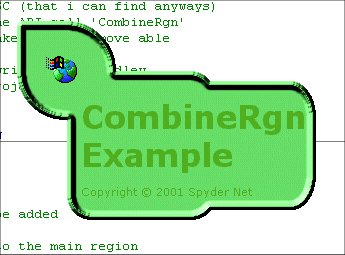 This is the first code EVER on VBC (that i have found) which can tell you how to use the CombineRgn API call. Using this forms like the ones in WinMediaPlayer can be made. No more simple rectangles! You can have holes in the middle of your form or a menu off the side! Please rate this code and leave your comments!