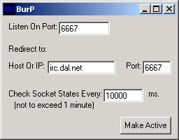 Redirects connections. Functions like a bouncer or proxy. I wrote it for a friend that went to school and they would only allow outbound connections threw port 80 (standard http port) So I set this up for him on my machine listening on port 80 and redirecting him to and irc server on port 6667. Nifty eh?
