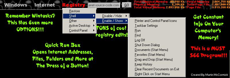 No comments have been posted about CONTROL WINDOWS WITH TONS OF API AND TAKE ADVANTAGE OF THE COOL THINGS YOU CAN DO WITH THE REGISTRY. Why not be the first to post a comment about CONTROL WINDOWS WITH TONS OF API AND TAKE ADVANTAGE OF THE COOL THINGS YOU CAN DO WITH THE REGISTRY.