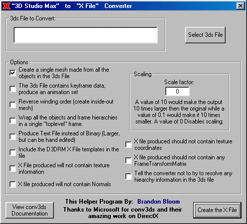 Do you use 3D Studio Max to create the models for your D3D Applications? Don't have an Export Plugin and are tired of useing the command line driven conv3ds? Well this is for you!