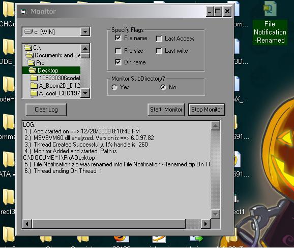Creating threads in VB6 using CreateThread. I know that simply using CreateThread doesn't works with VB and crashes VB but I have successfully created and used the thread to Monitor FileSystem Changes (using ReadDirectoryChangesW). This is a complicated piece of code and beginners can take up a lot of time understanding it (Specially if you don't know much about APIs and etcs). However, it must be used cautiously so I would ADVISE EVERYONE TO READ THE README AND OTHER DOCUMENTATIONS CAREFULLLY. After some more releases I think it will be completely safe to use this code. Take a look at it and send any comments to me via PSC. And do vote. Hope you will find this code useful. Thanks