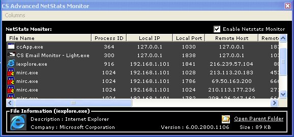Uses the xp AllocateAndGetTCPExTableFromStack to get the standard netstats in xp but also the Process ID of what each connection has, thus letting us find out which program is on the net. This program came from 2 different sources one from here by JayStacey , who in his version had some of my bandwidth code and just a few bugs in the code, not much though. The second came from a VB .Net example here https://www.codeproject.com/csharp/iphlpapi.asp?target=netstat
