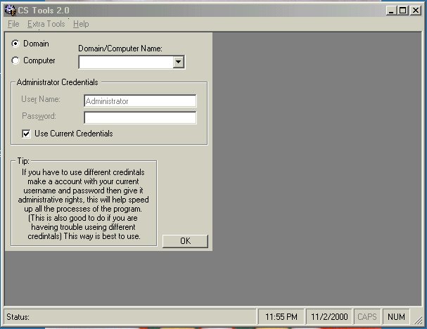You need to have WMI 1.5 and ADSI 2.5 installed by Microsoft. You can get this from my homepage, it is free from Microsoft. CS Tools is a great administrative tool that all Windows NT/2000 administrator should have.