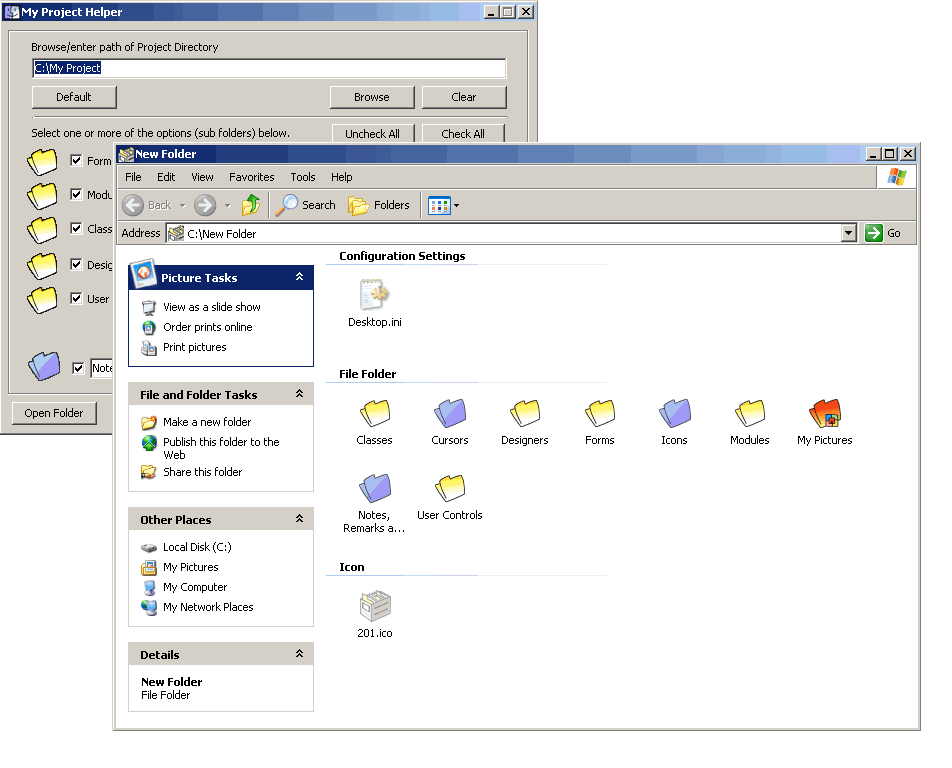 Create your (custom) VB Project Folder quickly. The primary sub directories are listed, so just tick what is required for your project.