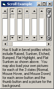 I GUARANTEE this is the BEST custom scrollbar you will find here on VBC. Has 6 preset bevel profiles, 3 mouse states (Normal, Mouse Hover, and Mouse Down), and you may use pictures in place of each of them giving you endless possibilities. The code is not commented yet but I will get to it soon and reupload it when I'm done. But this code is VERY clean and easy to follow. Please vote, I worked very hard on this.