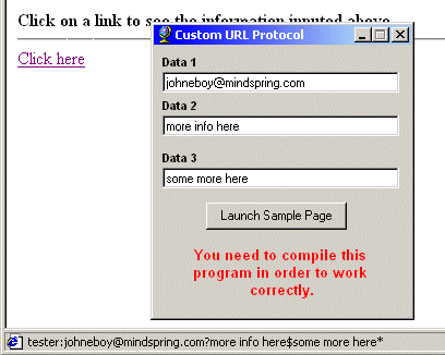 This is in response to a comment i got on my last custom protocol maker app. This one pass's variables to your program. this example shows how to get 3 seperate pieces of into from a URL click.