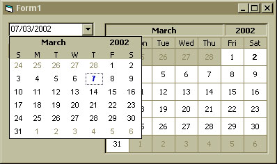 A date picker and month view control which have more properties compared to microsoft controls. please use shortcut menus to change month/year. right click month/year section to get shortcut menu