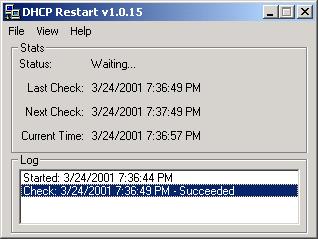 This utility will check your dhcp connection on a timed interval by pinging a server of your choice. If the ping fails, it will release then renew your dhcp settings.