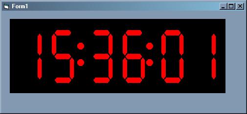Digital Clock, which also will fire a Time Reached event for 'triggers' that you can set up during design time, runtime, or even from the control itself during run time. This clock has four user options, which can be locked with it's properties. By clicking on the Clock Numbers, you can change the Colors from Red to Blue to Green. Right Clicking on the clock numbers will change it from 12 to 24 hour time. Clicking on the clock's colons will display the 'trigger events' you have set up, and left clicking on the clock's colons will allow you to add/modify/edit the trigger events. Please rate this code!