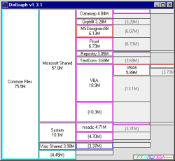 Draws a graphics view of the disc space usage on your drives, directories and network shares. Allows the user to navigate around the view to get zoomed-in or out viewsof the data. Useful for trying to find why that 12Gb partition is suddernly so full...