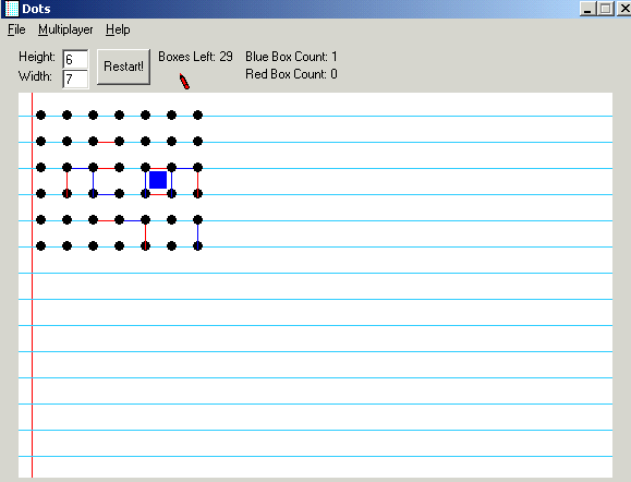 If you remeber that game back in school no, not tic tac toe, but DOTS! Make dots, draw lines, make boxes. Whoever has more boxes at the end wins type of deal. Well this is it! DOTS! Useful code for learning some internet programming as well using the Winsock control. Has icons in menus (using cool menu) and has a chatroom!
