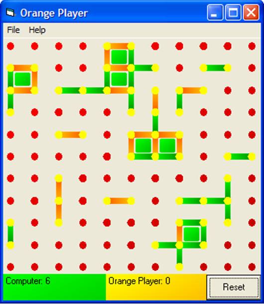 This is a computerised version a a game that i used to play at primary school where you have to make squares by connecting dots. It is quite simple and you can play against either the computer or another human player.