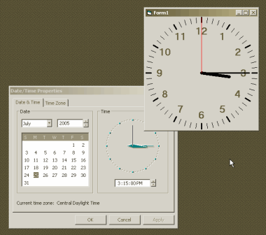 Yet another Analog Clock, that actually displays an analog clock to the nearest second. When providing a 'display' its all about appearance, and this one has all the parts in place. Also, the math involved is trivial compared to the rest of the code needed to draw the clock. Isn't it supposed to be this easy? <g>