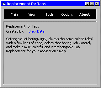 With only 6 lines of code, create an awesome new tab replacement that can be customized to any color, font and size that fits your application.