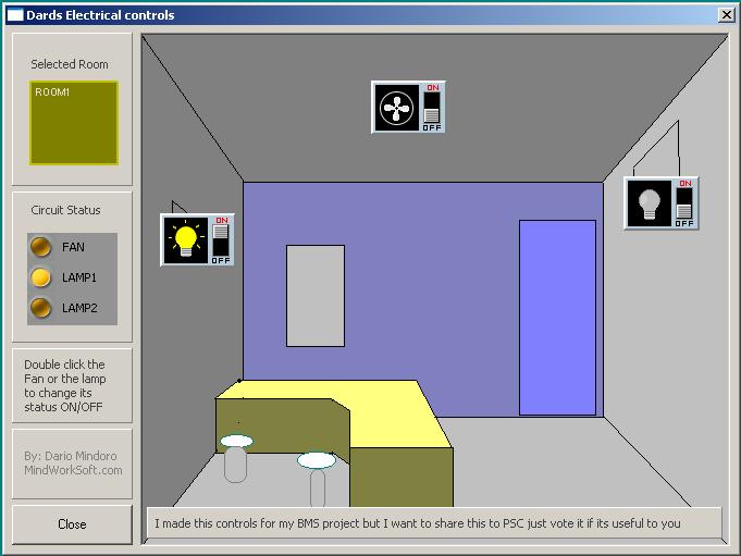Another control that I made for electrical controlling program, the is an animated button representing electric fan, lamp, LED and room. I used this controls for my BMS (Building Management System), for those who like my control here just give me a vote, thanks!