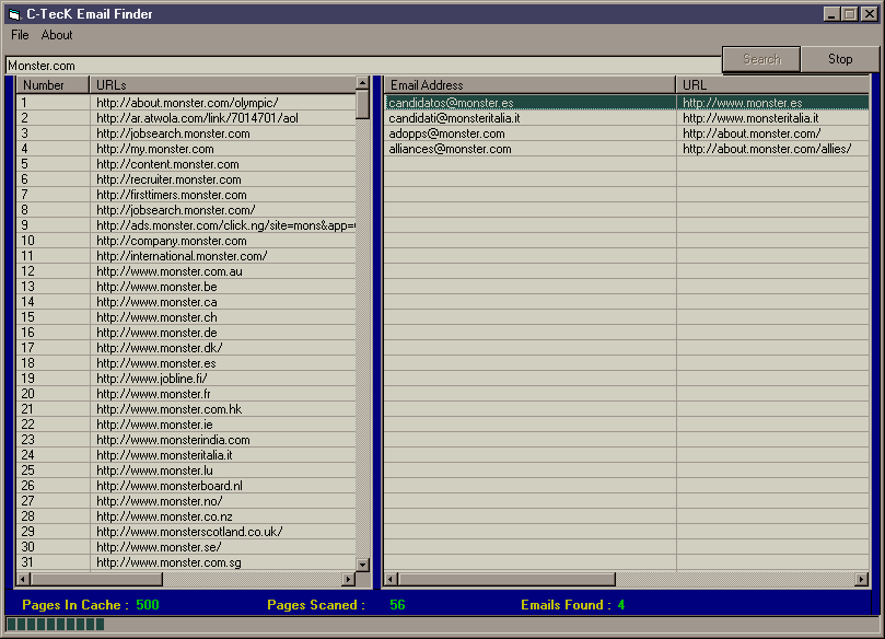 press buttons, but the spider will spot search for links or email address for about 15 sec and then continues again. But, over all, it works good. beside I just made it in 12 hours. I would
