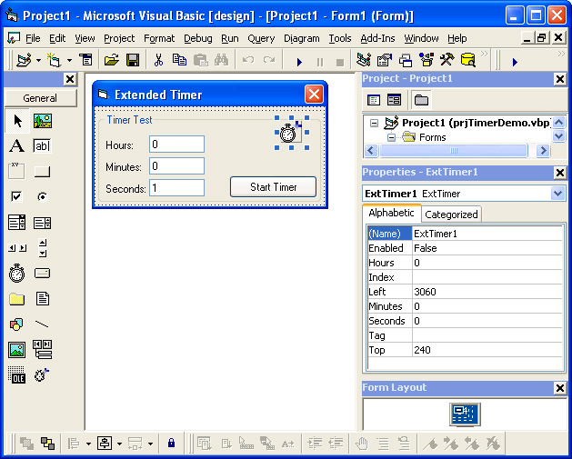 An extended Timer Control with an unlimited Interval property. Also, the user-friendly aspect of this Timer like control is enhanced by additional properties such as: Hours, Minutes, and Seconds who's values actually represent Hours, Minutes, and Seconds rather than milliseconds. For instructions regarding the use of this Active-X User Control refer to the Instructions.txt file which is included in this ZIP file. Project requested by: Anonymous VBCode user.