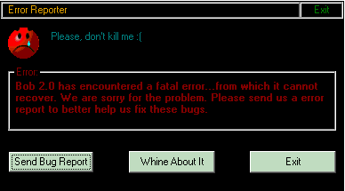 This code will simply tell the user that an error has happened, and will let them mail the user or exit after the error has happened, I myself place this in my Form_Terminate section. This could be easily updated to work with a error trapper code of some kind, I take no credit for the e-mail program, it was created by someone else on VBC and many thanks to them. Also, on another note, please change the e-mail address to your own or something else, from mine, or that or send me feedback from the program :)