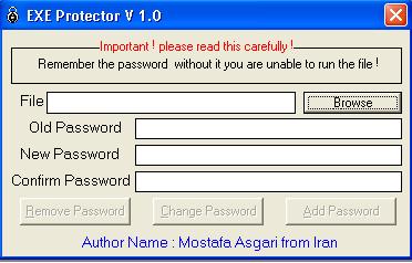 protecte your EXE file via put a password to file and when you open the file you must type the correct password then it will be run.Note: first compile password project with name "data.dat" to the folder of EXEProtector then run EXEProtector project and enjoy! Please rate me if you like this.