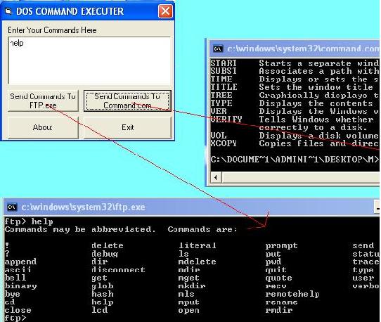 Well this has been made to teach you how to execute dos commands directly from visual basic application. A more advanced use of this application can be made by using it in ftp applications to change the file types of cgi files using ftp.exe, this function is not available to you when you program a ftp client in visualbasic