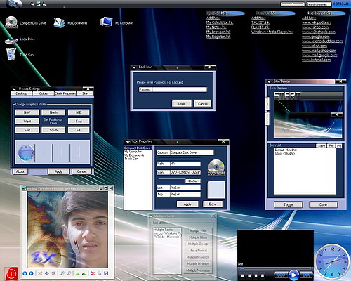 The best shell replacement you can find on VBC. Bundles of features are included. Complex source code, a great example for every one. Many usercontrols.The best and most useful are media player, label text, file list etc. These are made by me for this. Best features are USEI, Link Lock, Window hide, Window transparent, full featured Media Player with load/save playlist and File managment system, 32-Bit icons load, cool login screen, screen lock by password, fading and transparent shut down screen, picture tag of window (In operation) and also easy to use. NOTE : DO NOT CLOSE DEXTOP BY TASK MANAGER,PLEASE VOTE.